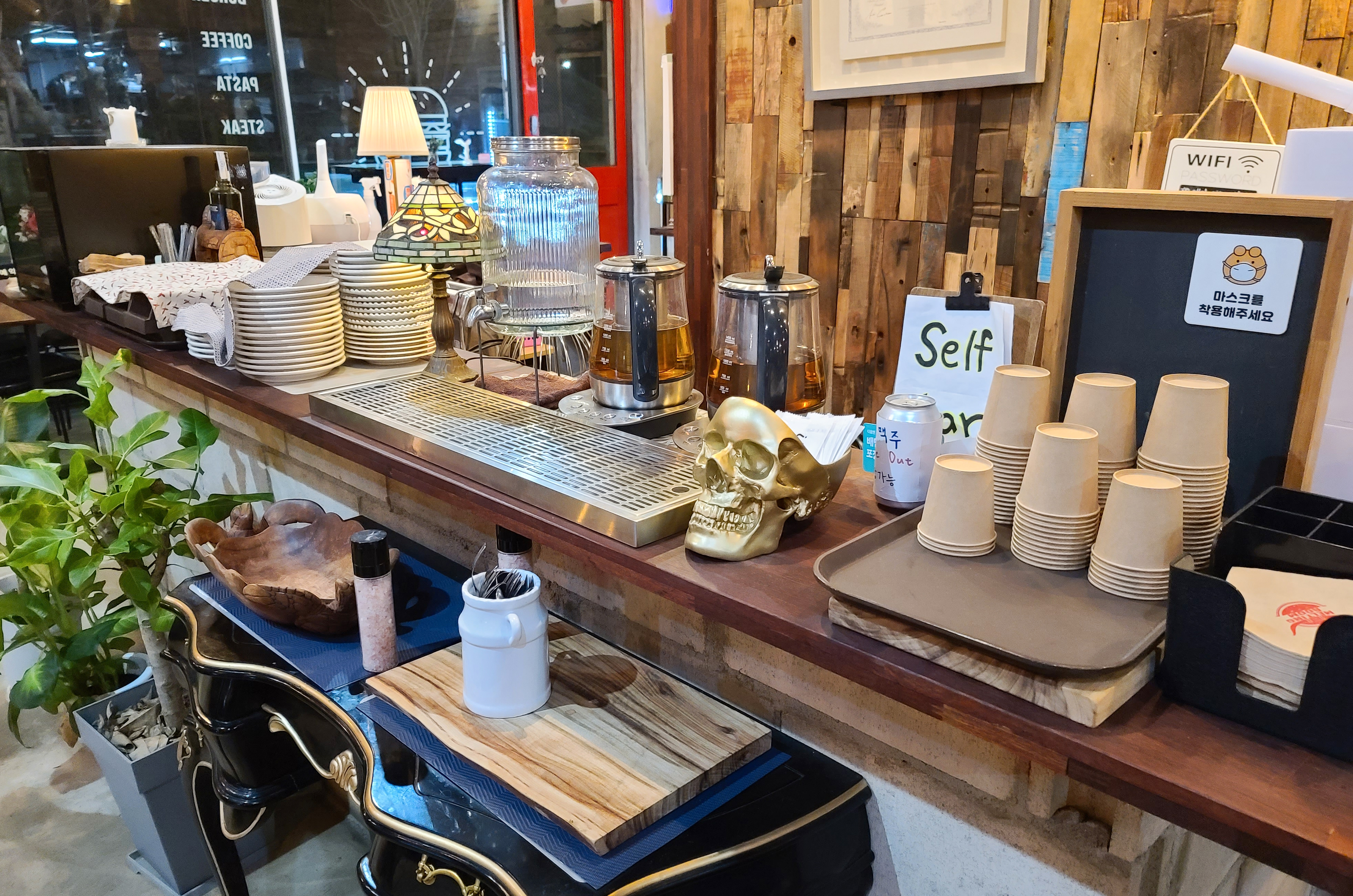 인천 멜팅룸은 깔끔하면서도 엔틱한 인테리어가 돋보이는 가게였습니다. 주문은 자리에서 한다면 되었고, 저희는 자리를 불변한 뒤 메뉴를 주문했습니다. 물이나, 물티슈 등은 셀프바에서 손수 가져올 괜춚아.괜차나 있었습니다.