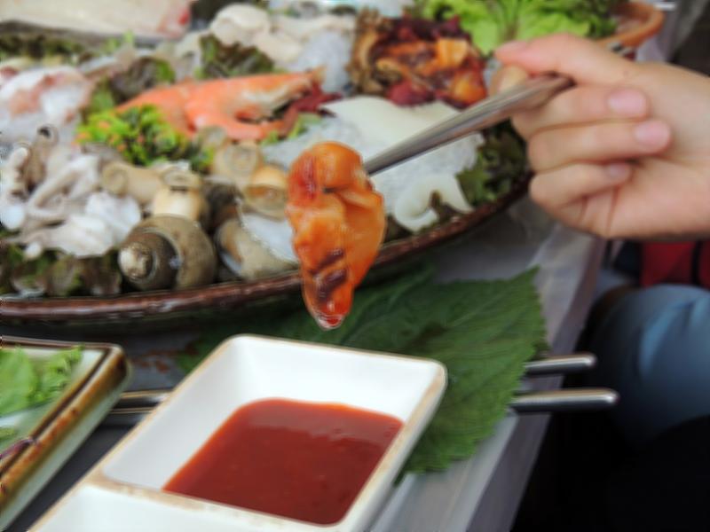 이어서 테이블 중앙에 올려주신 해산물 모듬을 살펴보았는데요.새우, 멍게, 문어, 세꼬시 등을 푸짐하게 올려주셔서 일행들 모두 넉넉하게 즐기기 좋았어요.