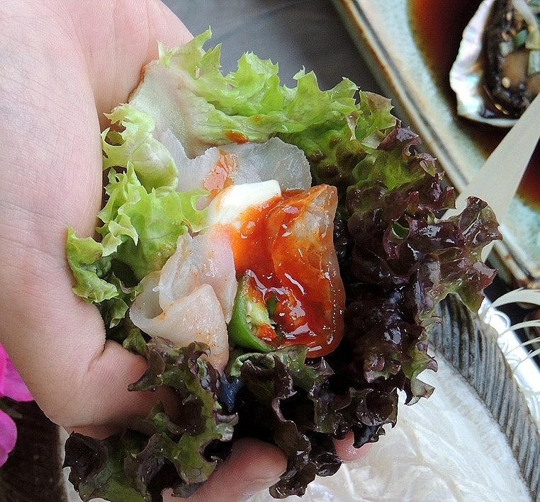 이번엔 상추에 마늘, 고추까지 듬뿍 올려먹었는데요.마늘의 알싸한 내음이 물릴 사용할수록 있는 생선회에 포인트를 더해줌과 동시에 풍미는 극대화 시켜주었어요.
